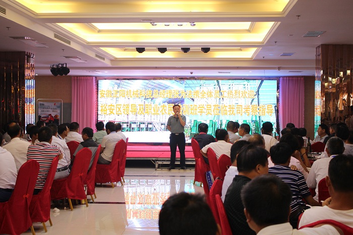 9月13日下午,裕安區(qū)職業(yè)農民培訓班一行人蒞臨我公司考察指導,此次培訓班由200多名種植大戶組成,場面十分熱鬧,公司張為法總經(jīng)理、許為青副總經(jīng)理、總經(jīng)理助理胡家冀、銷售部部長張杰等參與了此次接待活動,張為法總經(jīng)理代表安徽正陽機械科技有限公司表達了對于他們此次來訪的熱烈歡迎。